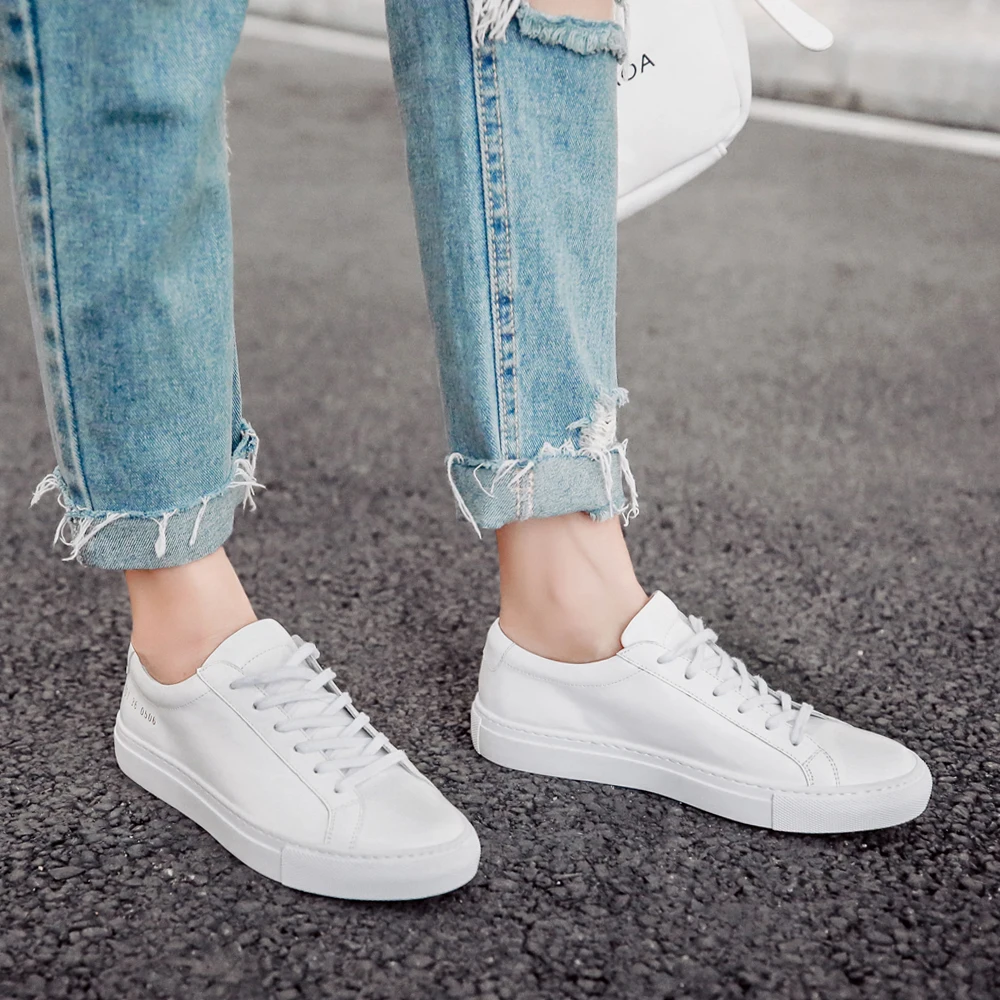 Donna-In Breathable Genuine Leather White Sneakers Women Hollow Spring Summer 2020 Leisure Flat Women Shoes Low Heel Comfortable