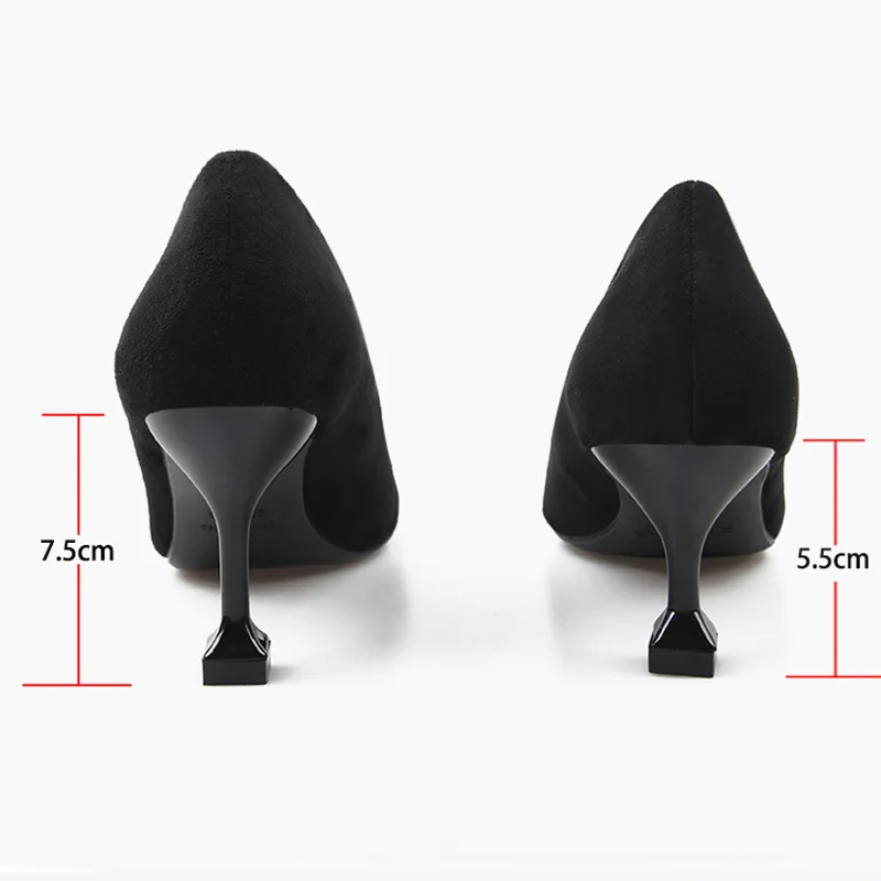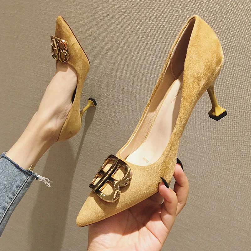 2020 Spring New Style Online Celebrity Pointed-Toe High Heel Shoes Thin Heeled Versatile Low-Cut Women's Shoes Suede Semi-High H