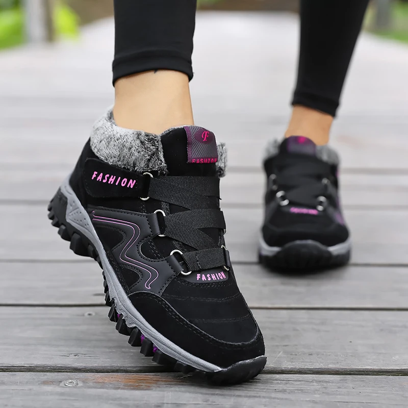 Brand Women Winter Snow Boots Fur Women Waterproof Ankle Boots Slip On Warm Plush Boots Wedge Lace-Up High Quality Suede Shoes