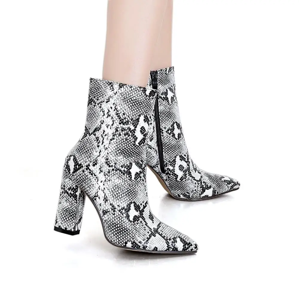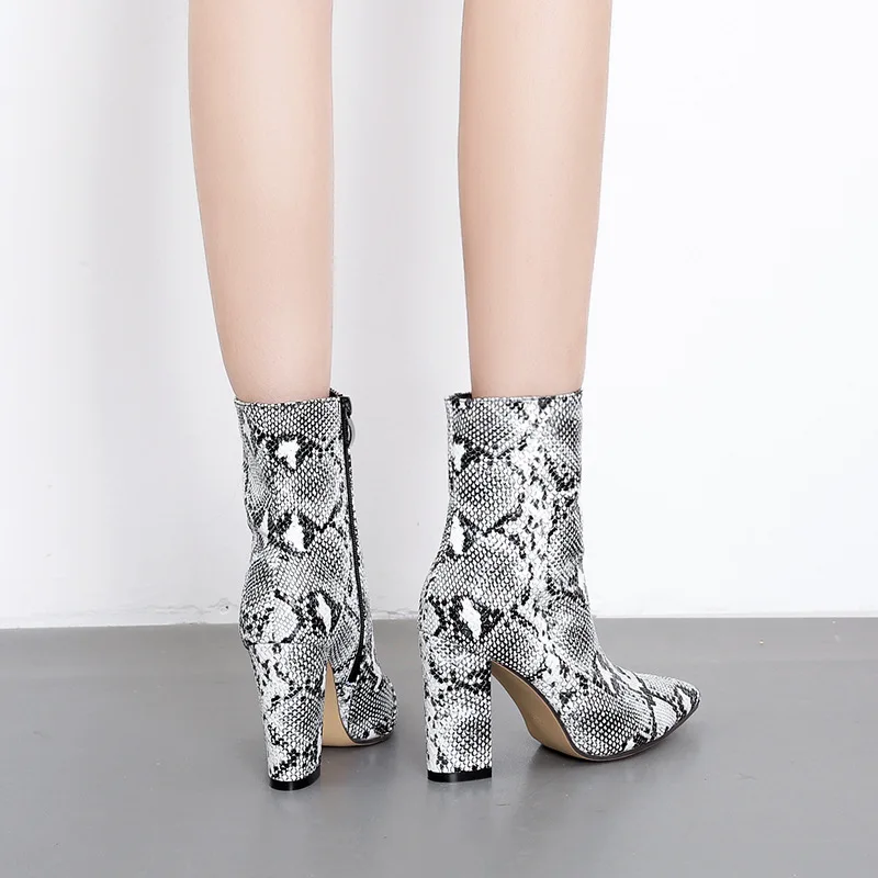 New Design Snake Print High Heels Ankle Women Boots Pointed Toe Zipper Fashion Booties Party Sexy Female Shoes Woman