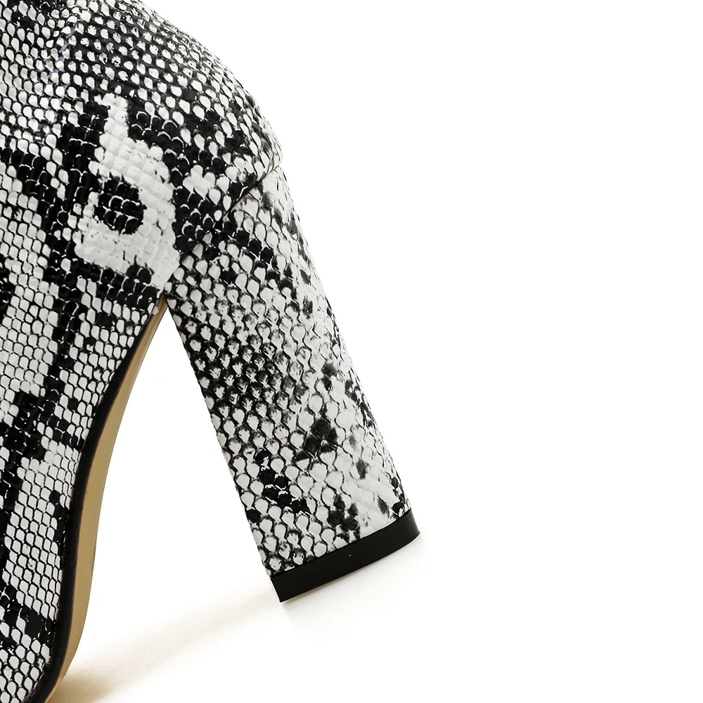Best Offer Botas Womens Plus Size Pointed Toe Ankle Snakeskin Boots With High Block Square Heels Snake Print C with FREE Shipping Worldwide!