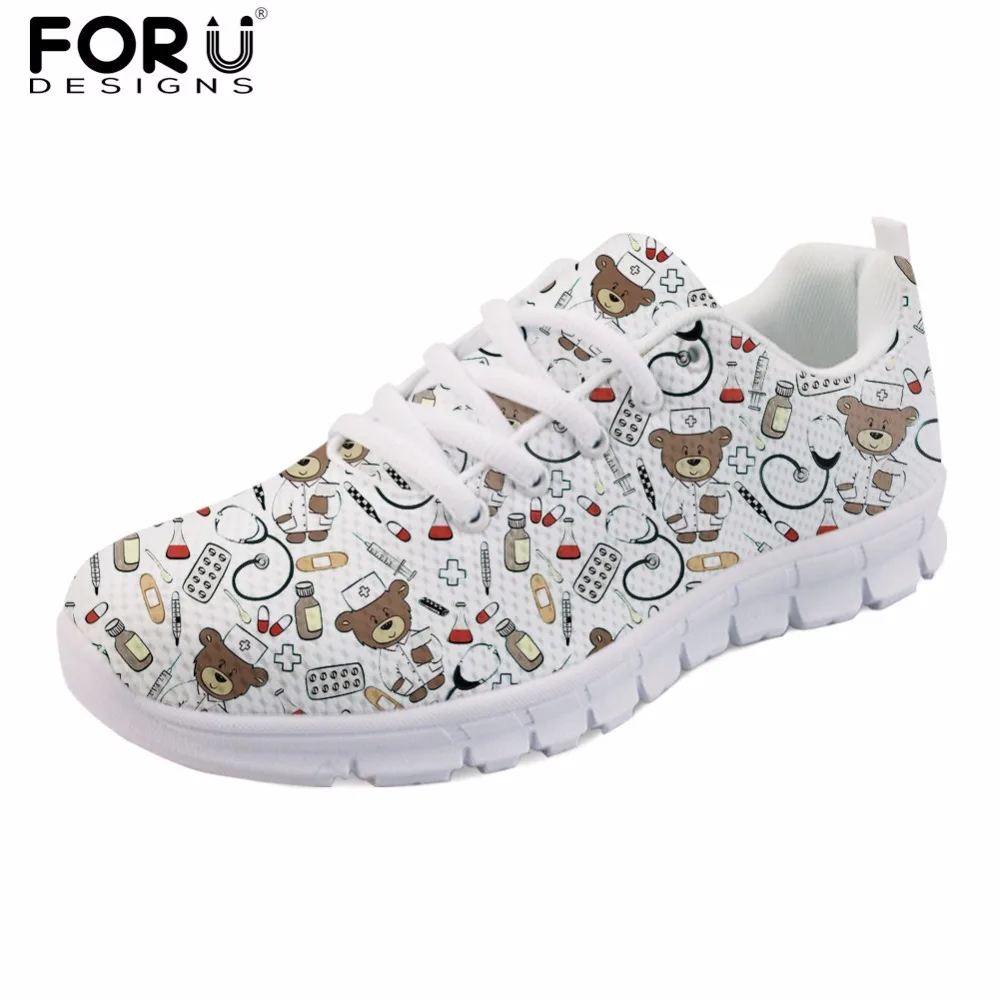 Special Price Forudesigns White Cute Cartoon Nurse Bear Pattern Women Casual Sneakers Nursing Comfortable Mesh Fl with FREE Shipping Worldwide!