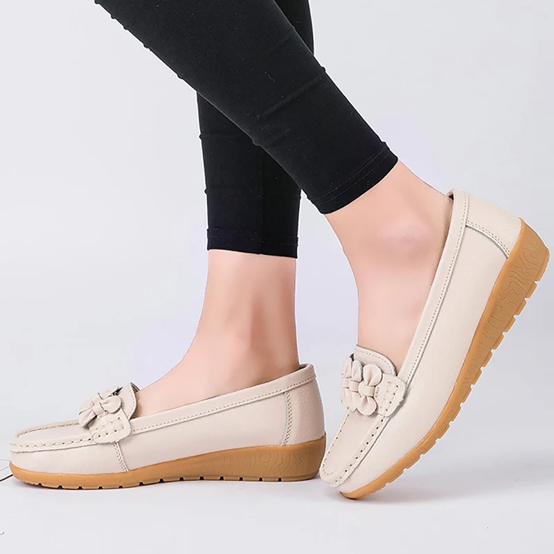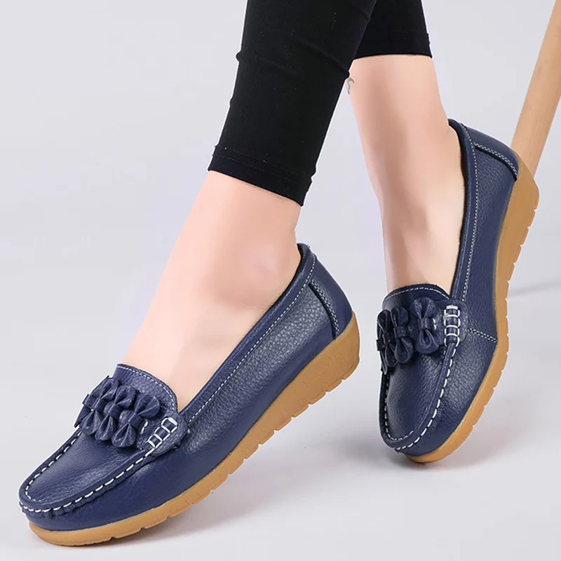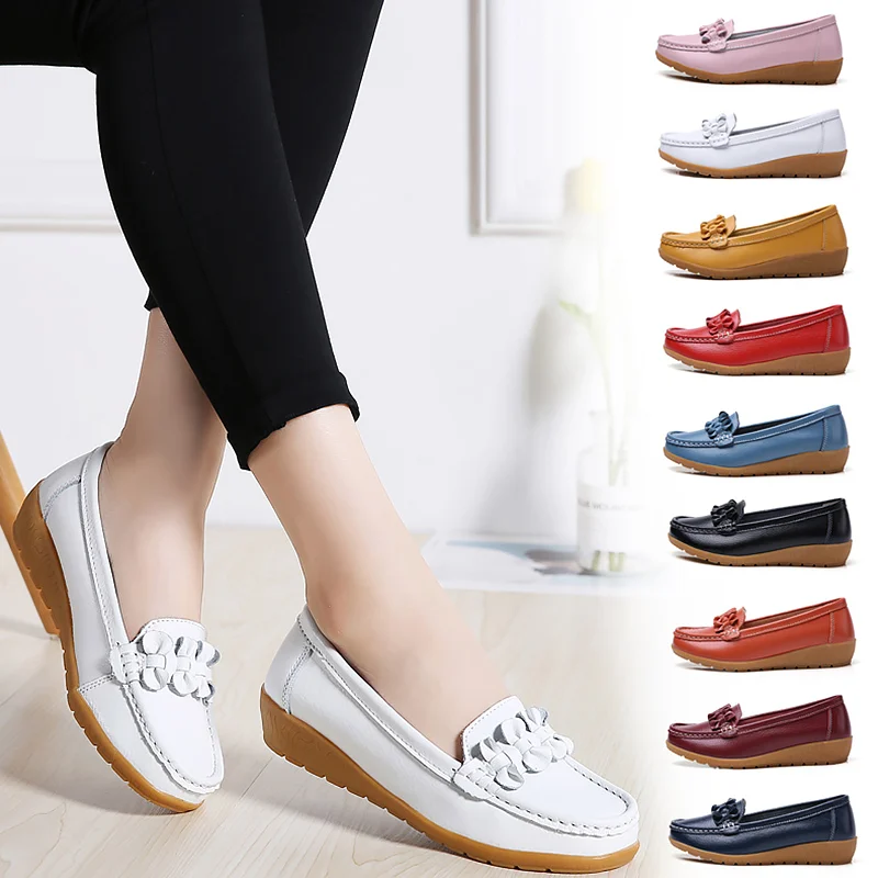 Shoes Woman Moccasins Shallow Genuine Leather 2020 Fashion Flats Slip On Shoes For Women Superstar Shoes Plus Size 4.5-12