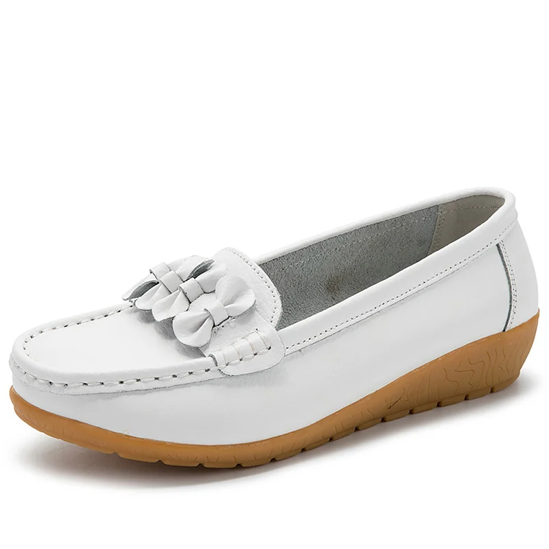 Cheap Price Genuine Leather Shoes Women Flats Loafers Butterfly-Knot Wedge Tpr Colors Boat Shoes with Free Worldwide Shipping!