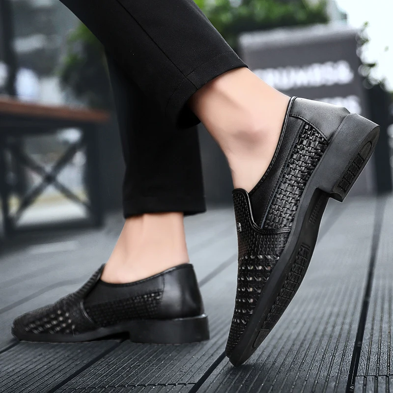 2019 New Summer Vintage Men's Leather Sandals Genuine Leather Soft Bottom Slip-On Shoes Hole Shoes Hollow Weave Shoes