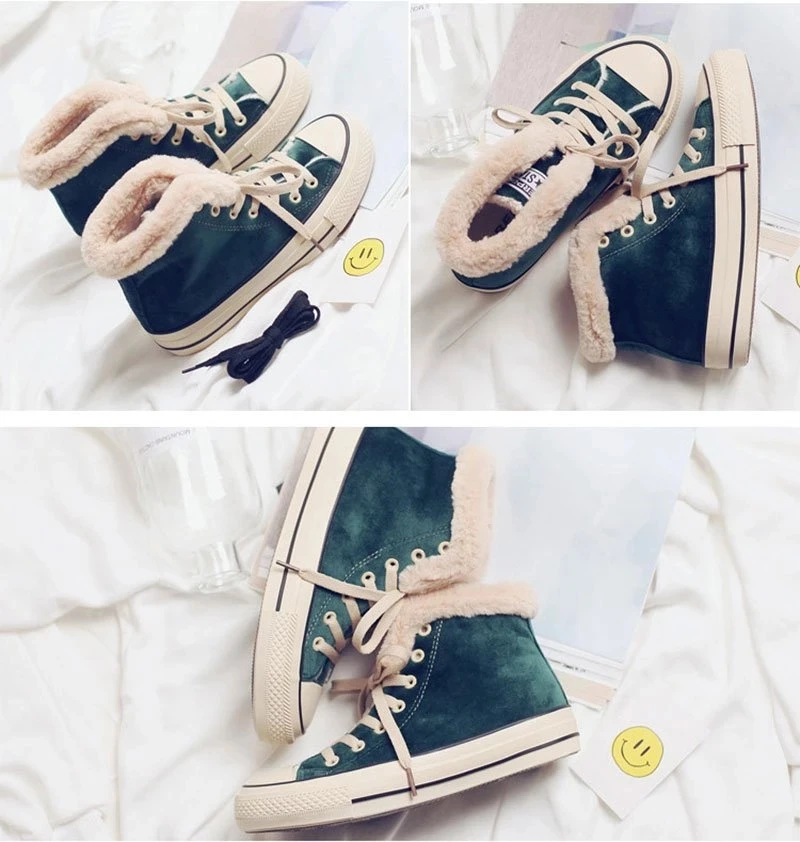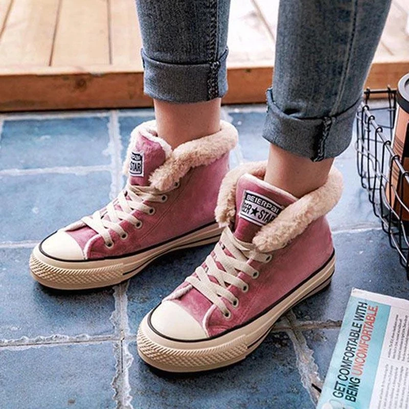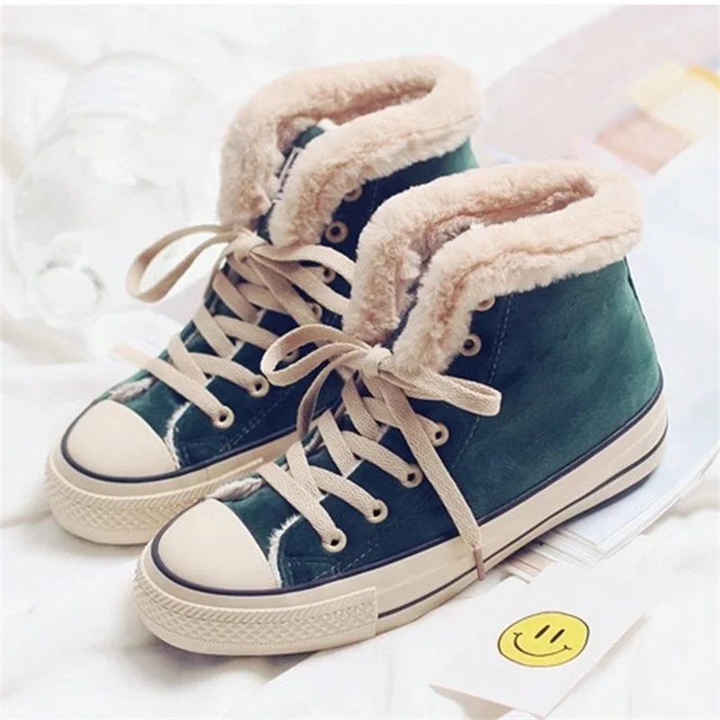 Women Shoes Warm Winter Short Plus Velvet Cotton Shoes Ladies Snow Boots Lace Up Female Canvas Shoes Woman