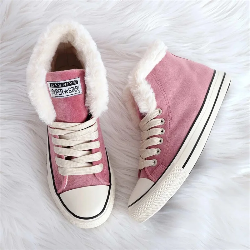 New Women Warm Shoes Winter Short Plus Velvet Cotton Shoes Ladies Snow Boots Lace Up Female Canvas Shoes Woman Dropshipping