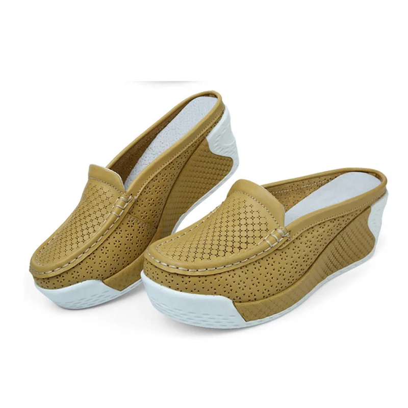 Yaerni Summer Nurse Shoes White Wedge Heels Breathable Work Shoes Anti-Skid Air Cushion Pregnant Women's Mother Shoes
