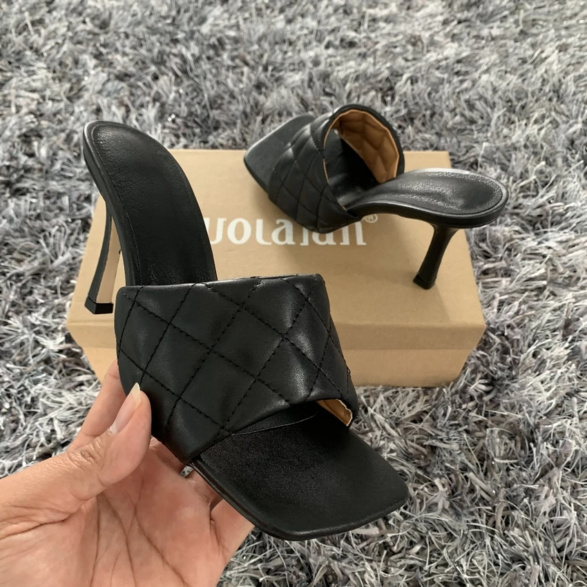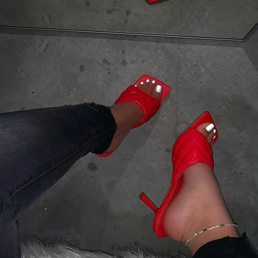 Summer Women Sandals Square Toe Ladies Heel Mules Sexy Thin High Heels Sandals Slippers Female Fashion Woman Shoes 9cm