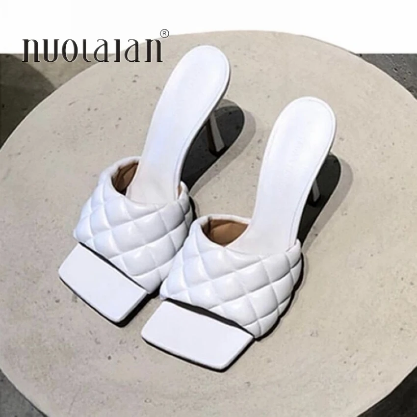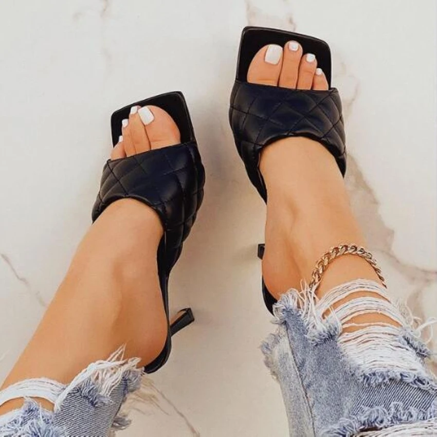 2020 New Summer Women Sandals Square Toe Ladies Heel Mules Sexy Thin High Heels Sandals Slippers Female Fashion Woman Shoes