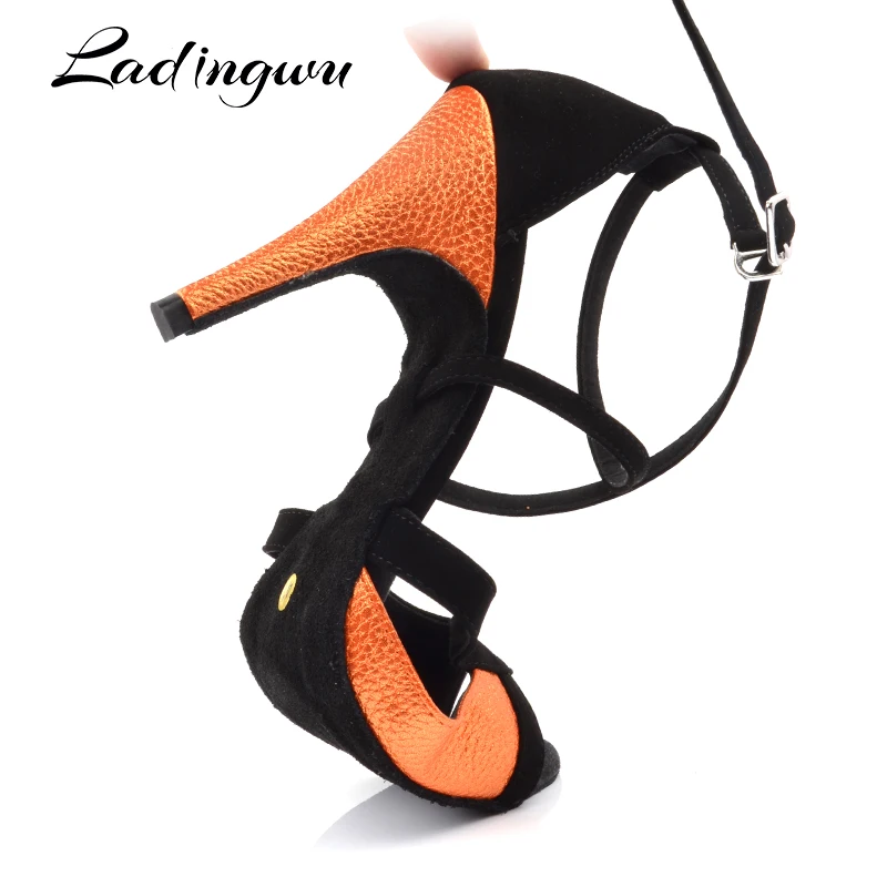 Limited Offer Ladingwu Salsa Dance Shoes For Women Black Flannel And Orange Pu Latin Dance Shoes Women's Ballroom with FREE Shipping Worldwide!