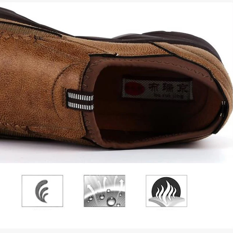 2019 New Leather Men's Shoes Non-Slip Thick-Soled Fashion Men's Casual Shoes Men's High-Quality Leather Lok Fu Casual Shoes
